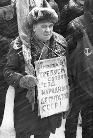 Митинг на Дворцовой площади. Плакат с надписью "Требуем созыва съезда народных депутатов СССР".
