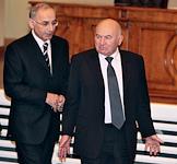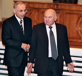 Генеральный прокурор России Юрий Чайка (слева) и мэр Москвы Юрий Лужков (справа) на торжественном собрании, посвященном 85-летию создания Верховного суда. Собрание состоялось в здании Верховного суда России.