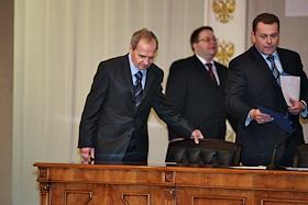 Заместитель Председателя Совета Федерации России Александр Торшин (в центре) и заместитель Председателя Государственной Думы России Вячеслав Володин (справа) на торжественном собрании, посвященном 85-летию создания Верховного суда. Собрание состоялось в здании Верховного суда России.
