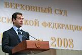 Первый заместитель председателя Правительства России, избранный Президент России Дмитрий Медведев на торжественном собрании, посвященном 85-летию создания Верховного суда. Собрание состоялось в здании Верховного суда России.