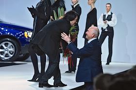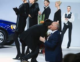 Весенняя Неделя Моды в Москве (Moscow Fashion Week). Мэр Москвы Юрий Лужков (справа) на показе новой коллекции одежды от модельера Валентина Юдашкина (в центре). Показ прошел в Гостином Дворе.