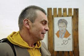 Музыкант и художник Сергей Воронцов на церемонии открытия своей выставки-инсталляции "Космос — лучшая одежда для отдыха" в галерее "АРТСтрелка-projects".