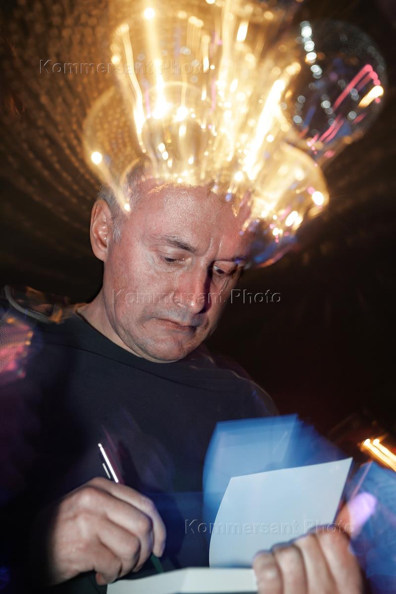Президент заукозаписывающей компании "Снегири Рекордз" Олег Нестеров на презентации своей книги "Юбка". Презентация прошла в клубе "Икра".
