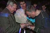 Президент заукозаписывающей компании "Снегири Рекордз" Олег Нестеров (справа) на презентации своей книги "Юбка". Презентация прошла в клубе "Икра".