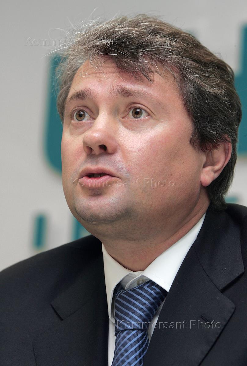 Олег Меркулов генеральный директор ООО "Росгосстрах-Столица" во время пресс-конференции посвященной первому совместному социальному проекту "Росгосстраха" и банка "Возрождение". Пресс-конференция прошла в центральном офисе агентства "Интерфакс".