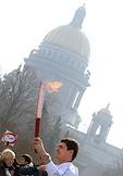 Участники Этап всемирной эстафеты Олимпийского огня летних игр 2008 года в Пекине. В факельной эстафете участвовали известные спортсмены прошлых лет, участники паралимпийских игр, а также россияне, добившиеся выдающихся успехов в различных сферах деятельности. Четырехкратный олимпийский чемпион по плаванию Александр Попов во время эстафеты.