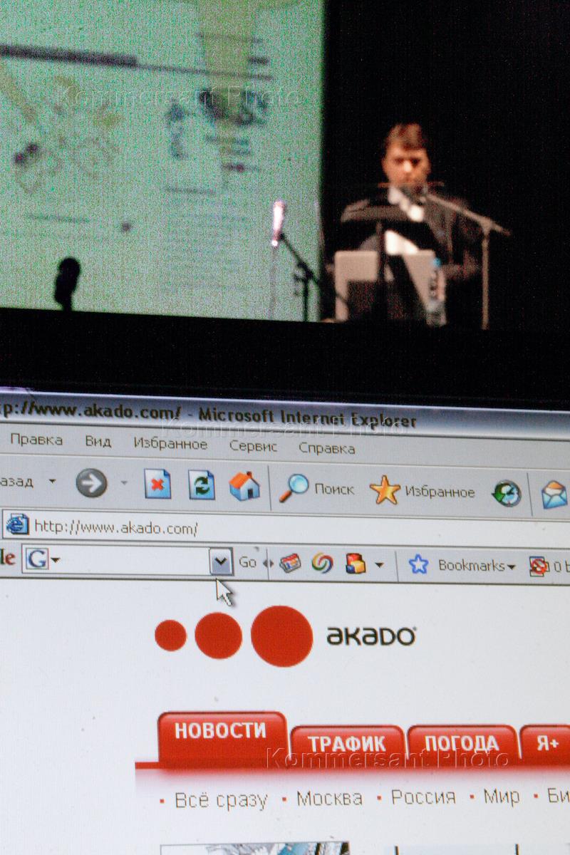 "Akado.com" editor-in-chief Alexande Pisarev at the presentation of the new new entertainment portal of the "Akado" Internet provider at the Cisterna Hall club.