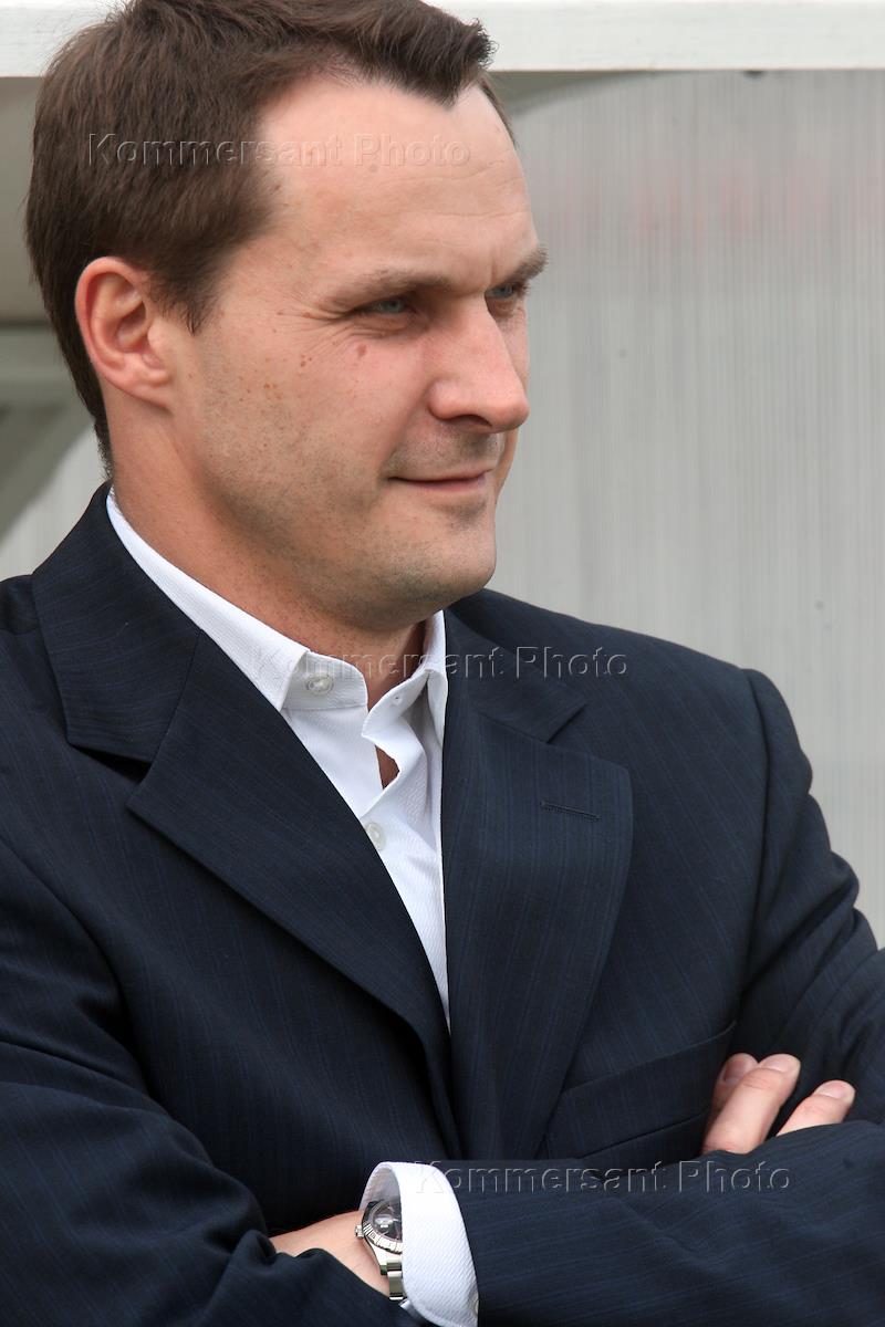 Чемпионата России по футболу. Главный тренер команды "Динамо" Андрей Кобелев наблюдает за игрой своей команды во время матча с командой "Спартак" (Москва). Игра со счетом 4:3 в пользу "Динамо" прошла на стадионе "Динамо".