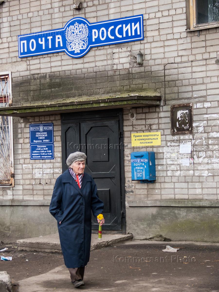 "Почта России". Старое обшарпанное здание, в котором находится отделение почтового оператора. Вывеска "Кибер почта" на стене.