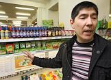 Генеральный директор и совладелец компании "Виртекс-food" Владимир Лим в магазине у прилавка с продукцией своей компании.