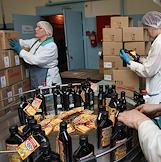 Линия по производству маринадов к барбекю на заводе компании "Виртекс-food". Рабочие на конвейере.