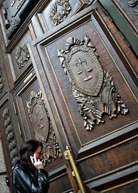 Милиционер у входа в здание Верховного суда России.