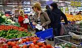Покупатели в овощном отделе супермаркета "Седьмой Континент".
