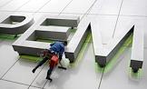 Рабочий моет вывеску Торгового дома (ТД) "Времена года".