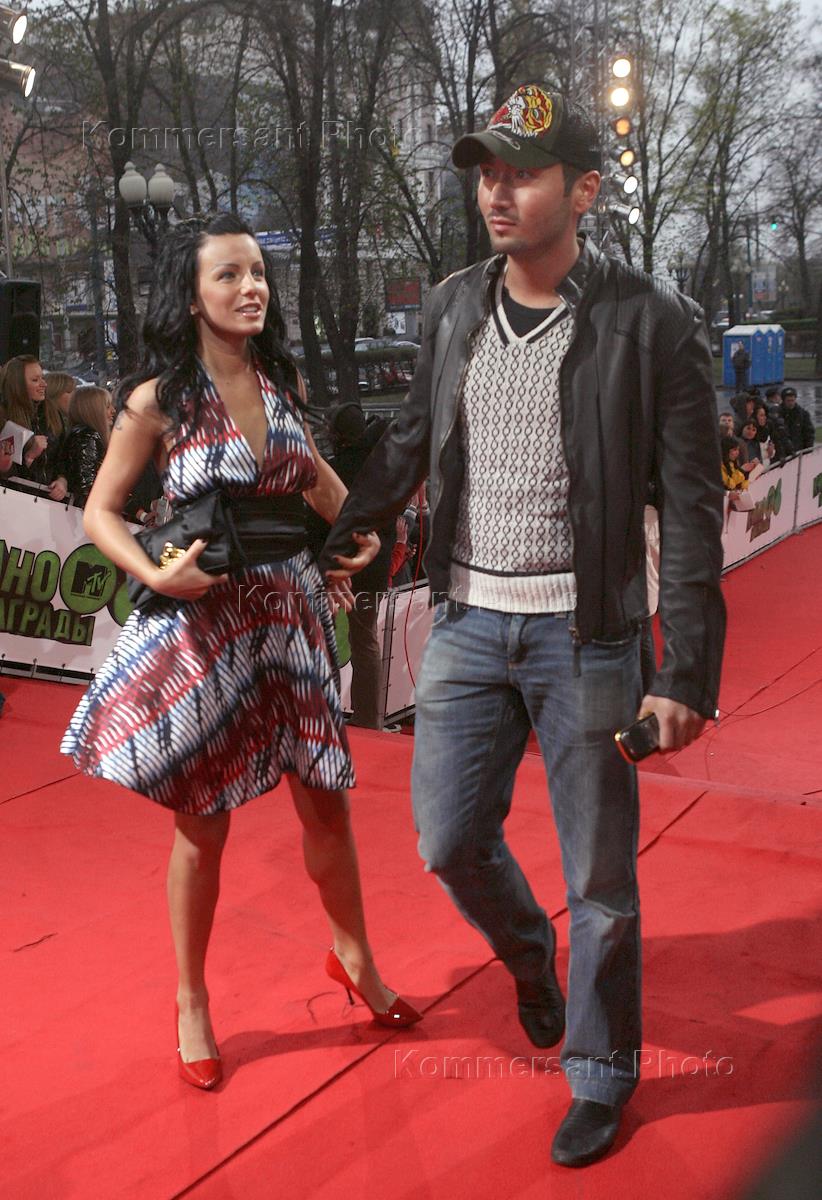 Певица Беретта (справа) и участник группы "Плазма" Максим Постельный (слева) на торжественной церемонии вручения премии за самые яркие достижения в области киноиндустрии – "Кинонаграды MTV Россия 2008". Церемония прошла в кинотеатре "Пушкинский".