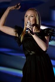 Певица Кристина Орбакайте во время выступления на торжественной церемонии вручения премии за самые яркие достижения в области киноиндустрии – "Кинонаграды MTV Россия 2008". Церемония прошла в кинотеатре "Пушкинский".