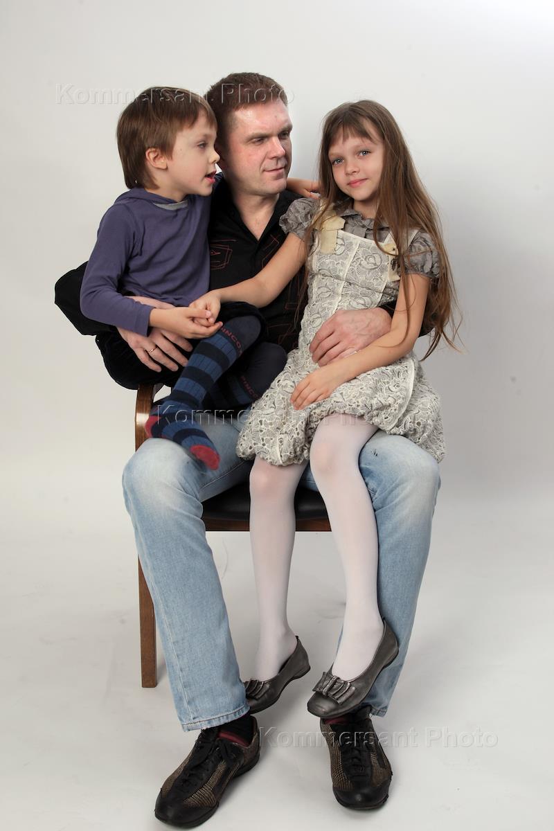 Корреспондент Издательского Дома "КоммерсантЪ" Андрей Колесников с своими детьми Ваней и Машей.