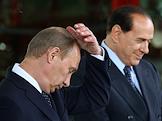 Визит Президента России Владимира Путина в Италию (о.Сардиния). Президент России Владимир Путин (слева) и лидер победившей на состоявшихся парламентских выборах коалиции "Народ свободы" Сильвио Берлускони (справа) на вилле "Чертоза".