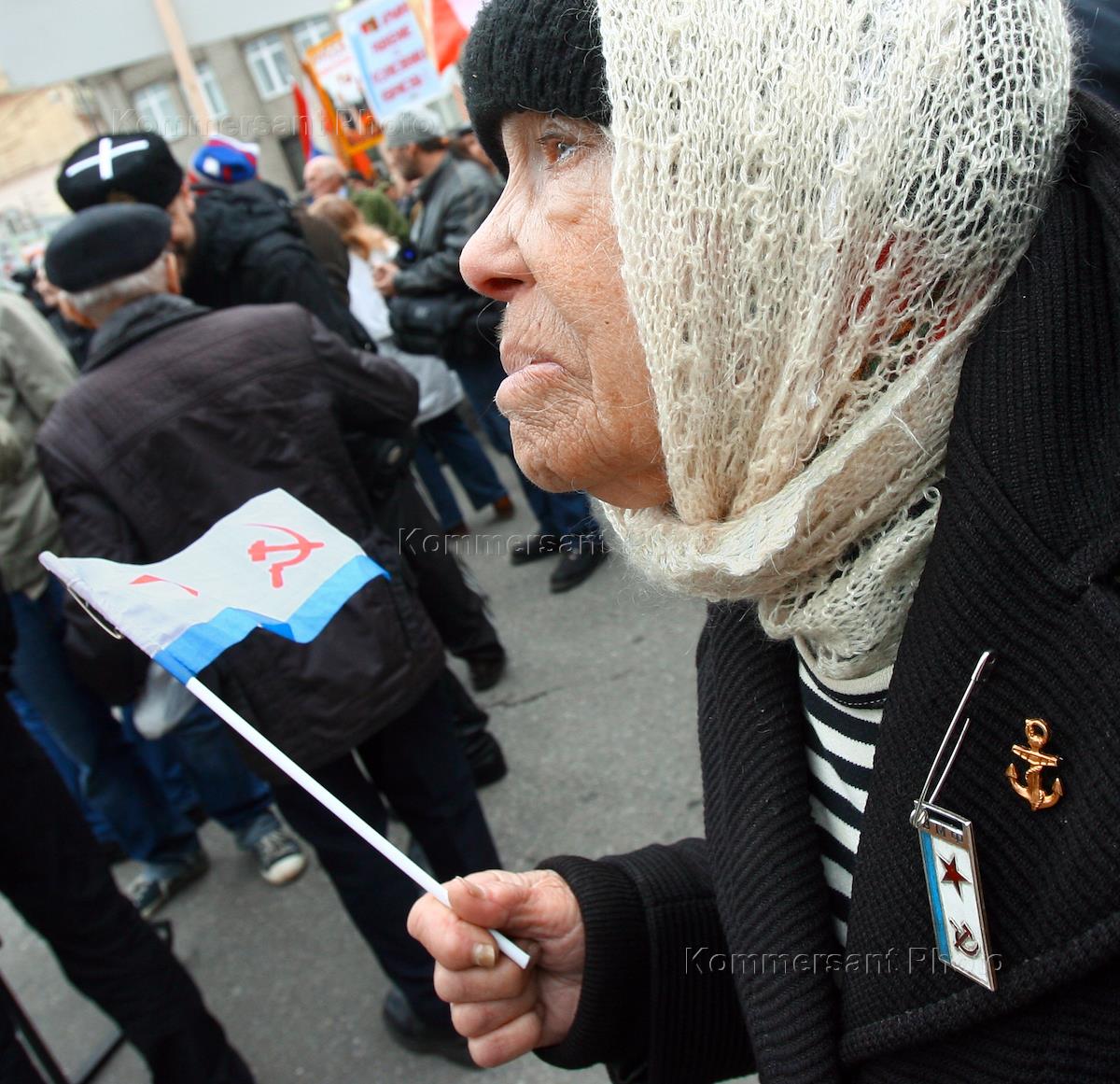 Участница митинга, организованного Славянским союзом журналистов в защиту русских политзаключенных. Митинг прошел на Триумфальной площади. В акции приняли участие активисты Движения против нелегальной иммиграции (ДПНИ), Славянского союза, Национально-державной партии России (НДПР), Союза офицеров, Православного союза хоругвеносцев, а также сторонники бывшего сопредседателя НДПР Бориса Миронова.