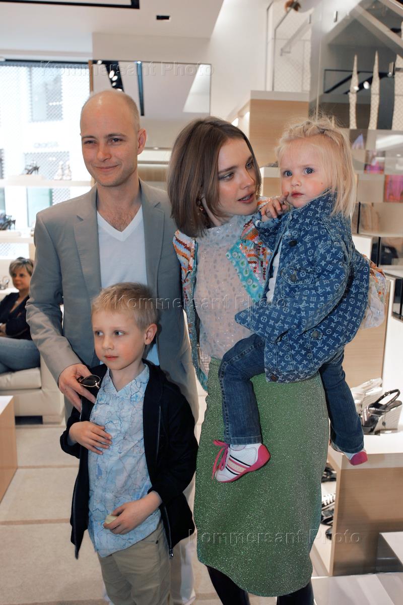 Модель Наталья Водянова (справа) с супругом художником, английским лордом Джастином Портманом (слева) и с детьми на праздновании открытия обновленного магазина "Louis Vuitton" в сотрудничестве с благотворительным Фондом "Обнаженные Сердца".