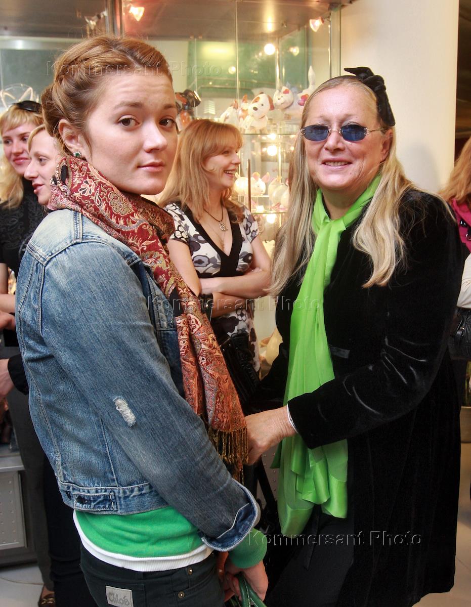 Президент благотворительного фонда "Русский силуэт" Татьяна Михалкова (справа) и ее дочь актриса Надя Михалкова (слева) на презентации журнала "Спорт плюс мода" в Новинском пассаже.