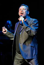 Вокалист британской реггей-команды "UB-40" Али Кэмпбелла (Al Campbell) во время выступления на своем сольном концерте в Ледовом дворце.