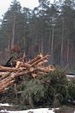 Последствия сильного урагана в городе. Упавшее дерево на крыше автомобиля.