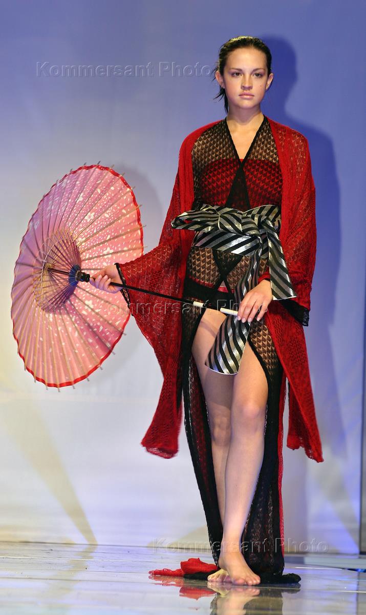 Модельер Даша Разумихина на премьерном показе японской трикотажной одежды класса "премиум" марки "Джей-Кей-Би" (JKB). Показ состоялся в отеле "Холидей ИНН Сокольники".