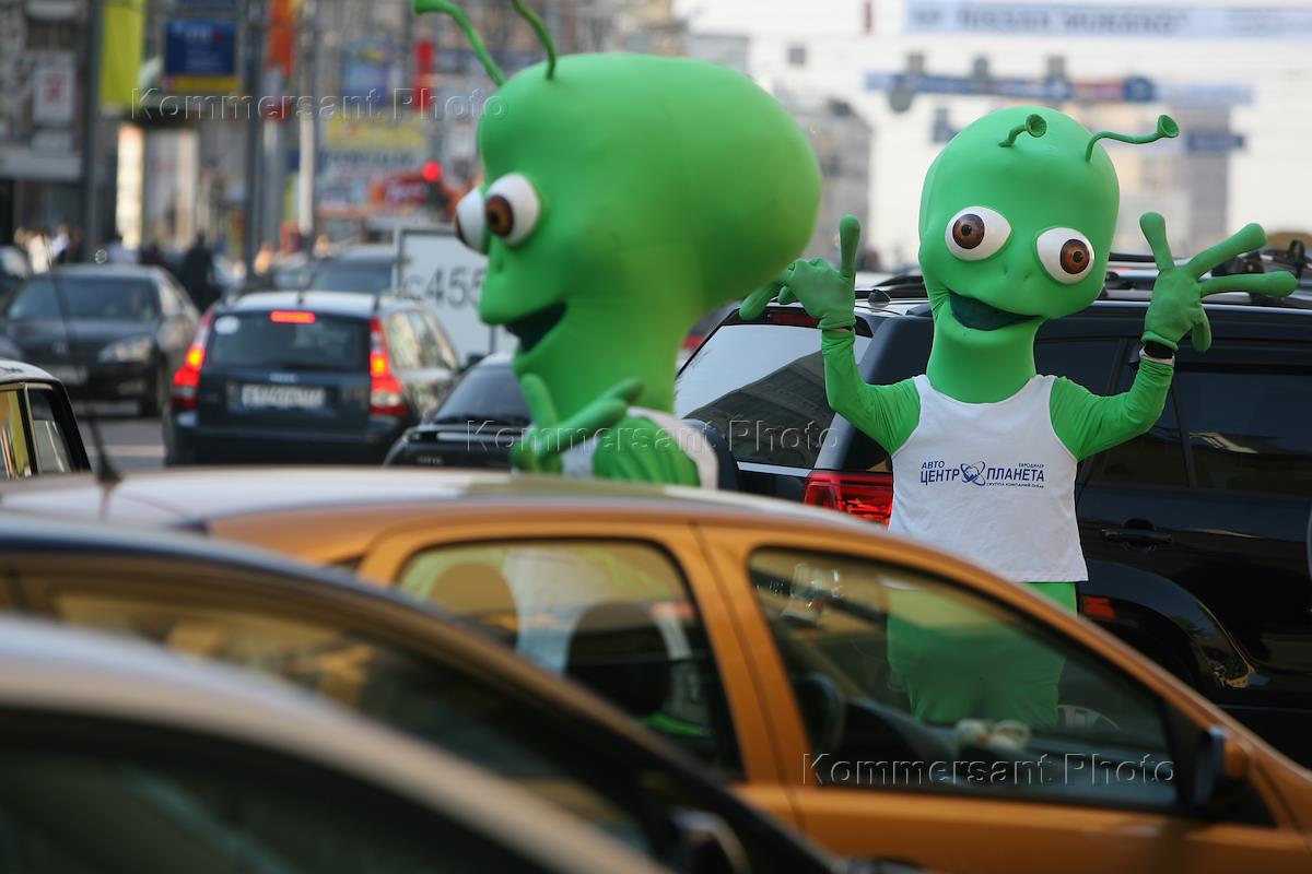 Ростовые рекламные куклы компании "Центр Планета" на улице Новослободской.