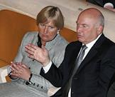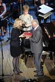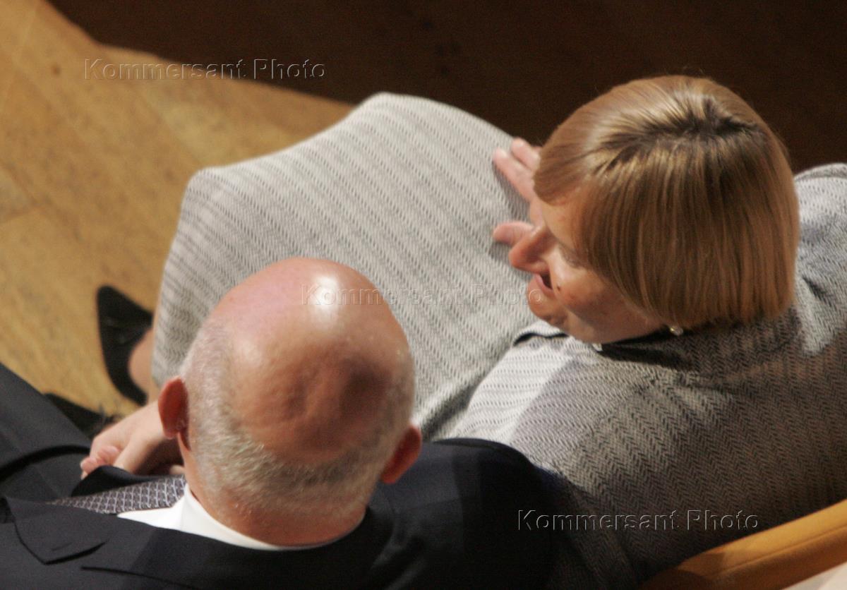 Министр здравоохранения и социального развития России Татьяна Голикова (слева) на Торжественном концерте по случаю 75-летия доктора Леонида Рошаля (справа) в Московском Международном Доме музыки.