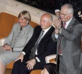 Мэр Москвы Юрий Лужков (в центре) и его супруга, глава компании "Интеко" Елена Батурина (слева) во время торжественного концерта по случаю 75-летия доктора Леонида Рошаля (справа). Празднование юбилея проходило в Московском Международном Доме музыки.