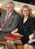 Мэр Москвы Юрий Лужков (справа) и его супруга, глава компании "Интеко" Елена Батурина (слева) во время торжественного концерта по случаю 75-летия доктора Леонида Рошаля. Празднование юбилея проходило в Московском Международном Доме музыки.
