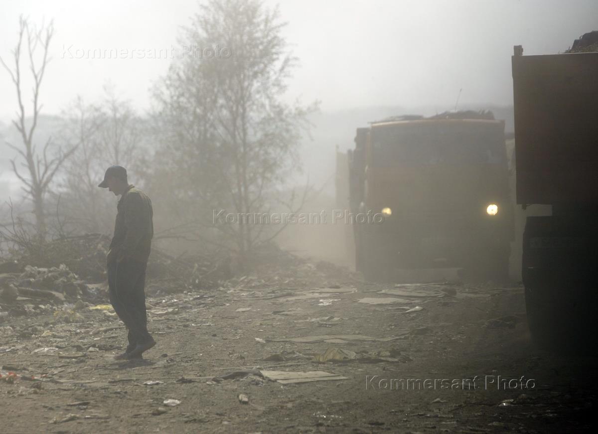 Полигон для мусора в районе поселка Игумново. Дым от возгораний на свалке.