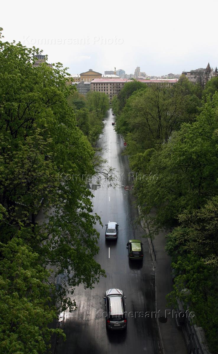 Виды города Киев. Аллея мариинского парка после дождя.