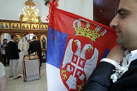 Досрочные парламентские выборы в Сербии. Сербы с национальным флагом.