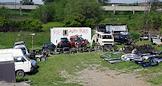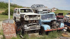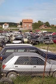 Виды города Митровицы в Косово. Автомобили припаркованные у автосервиса.
