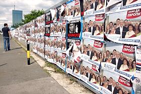В Сербии прошли досрочные парламентские выборы. Предвыборные плакаты блока коалиции "За европейскую Сербию - Борис Тадич". На одном из плакатов надпись "Скажи "Да" Европе!".