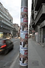 Досрочные парламентские выборы в Сербии. Предвыборные плакаты блока коалиции "За европейскую Сербию - Борис Тадич". На одном из плакатов надпись "Скажи "Да" Европе!".