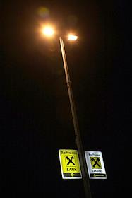 Реклама "Раффайзен банка" на улице города Митровицы в Косово.