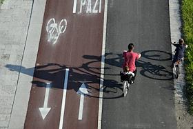 Жанровая фотография. Прогулка женщины с детьми на велосипедах.