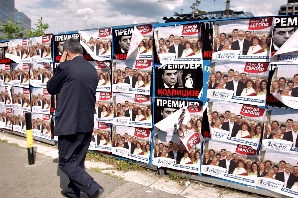 В Сербии прошли досрочные парламентские выборы. Предвыборные плакаты блока коалиции "За европейскую Сербию - Борис Тадич". На одном из плакатов надпись "Скажи "Да" Европе!".