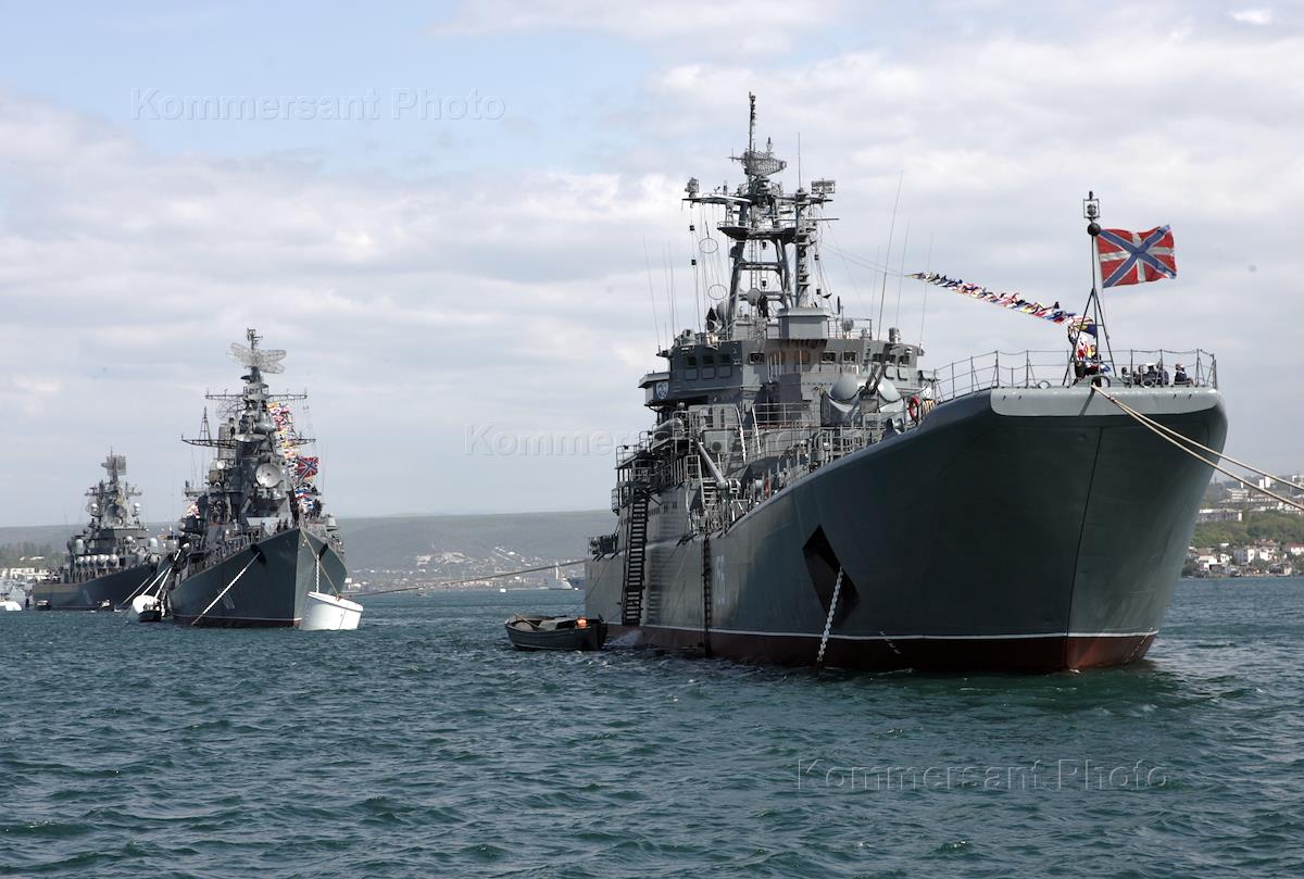Военные корабли Черноморского флота России во время празднования Дня Победы в гавани города.