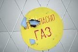 Предупреждающая вывеска на ограде "огнеопасно газ".
