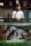 Свежая рыба в холодильной камере на кухне в ресторане "Yakimono".
