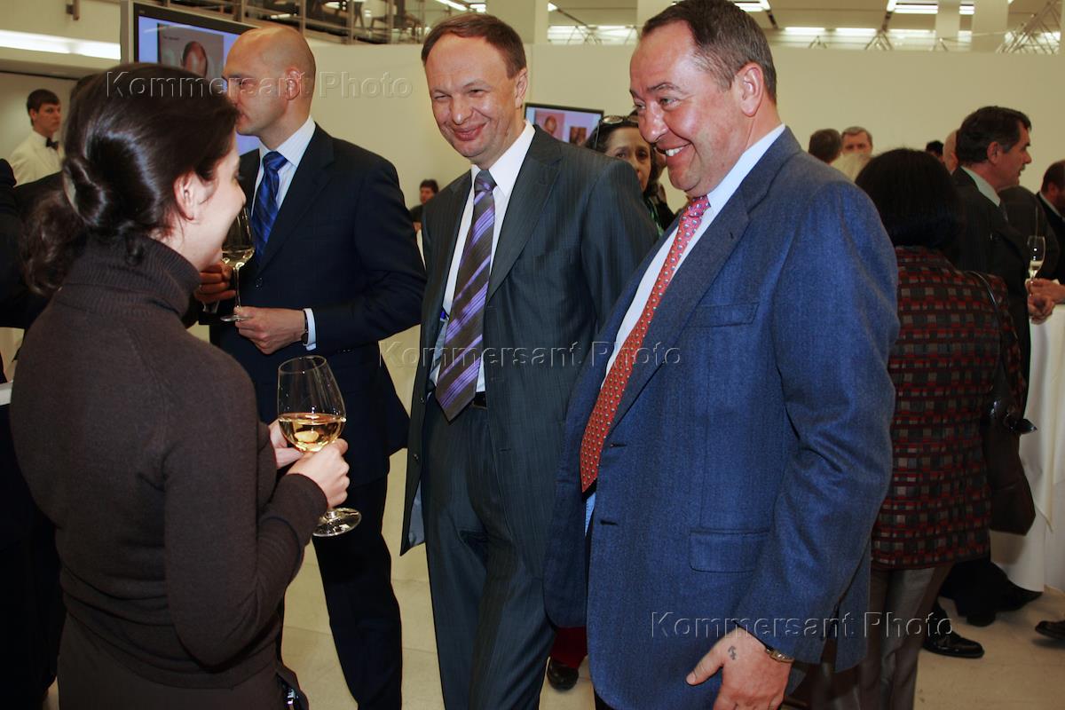 Заместитель руководителя администрации Президента России Алексей Громов (слева), главный редактор журнала "Профиль" Михаил Леонтьев (в центре) и министр связи и массовых коммуникаций России Игорь Щеголев (справа) на открытии выставки "Владимир Путин. Лучшие фотографии" в Центральном выставочном зале (ЦВЗ) "Манеж".