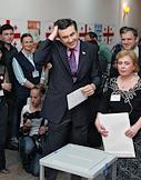 Парламентские выборы в Грузии. Президент Грузии Михаил Саакашвили (в центре) во время голосования на избирательном участке.