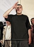 Певец Георгий Гачичеладзе, брат лидера Объединенной оппозиции Грузии Левана Гачичеладзе, во время проведения митинга.