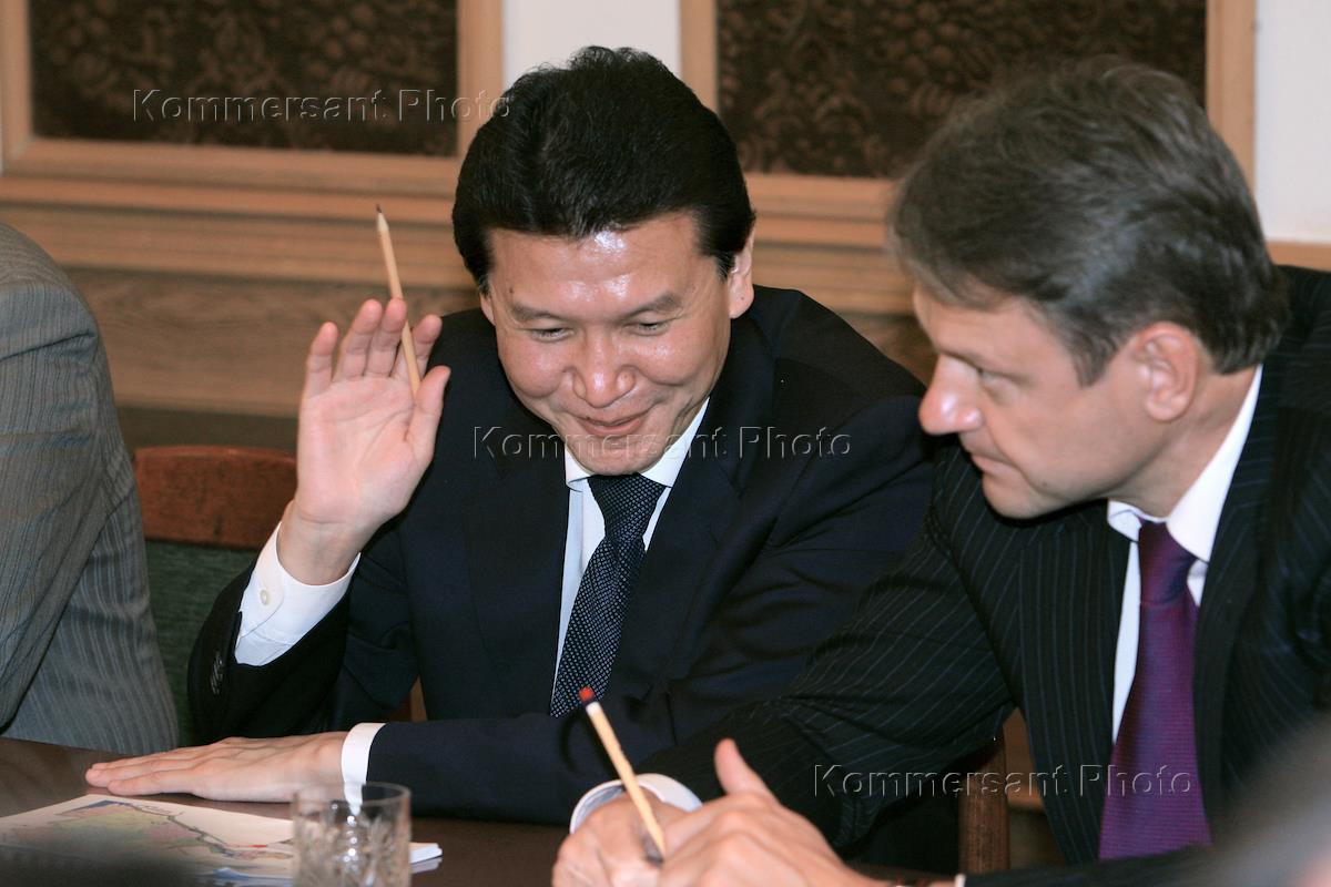 Губернатор Краснодарского края Александр Ткачев (справа) и президент Калмыкии Кирсан Илюмжинов (слева) во время заседания межведомственной рабочей группы Совета при Президенте России по вопросу "О ходе и перспективах реализации государственной программы развития сельского хозяйства на 2008-2012 годы".