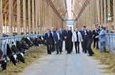 Генеральный директор ООО "Агрофирма "Село Ворошилова" Юрий Кайшев (слева) и председатель Правительства России Владимир Путин (третий слева) во время посещения молочно-товарной фермы ООО "Агрофирма "Село Ворошилова" в станице Суворовская.