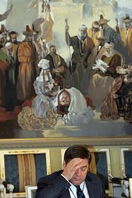 Первый зарубежный государственный визит Президента России в Казахстан. Министр энергетики России Сергей Шматко во время официальной встречи. Встреча прошла в президентском дворце "Ак Орда".